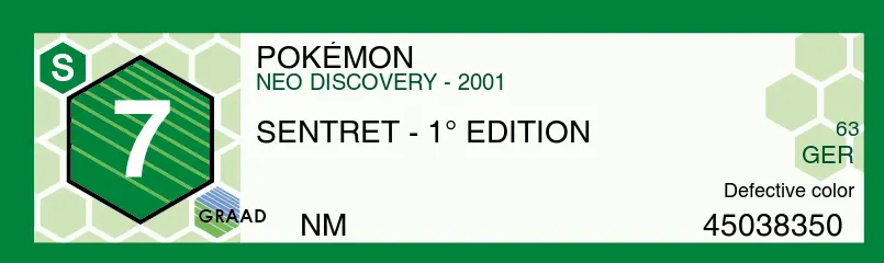 | Public Notes | Defective color. The card has one or more of the present coloring defects: (a) smudging of a color (b) ink stains (c) faded coloring (d) dark or very dark color tones (e) “Albina” print (absence of 1 or more colors) (f) Print with an overabundance of one color (g) “Foil” type paper with band patina print. |